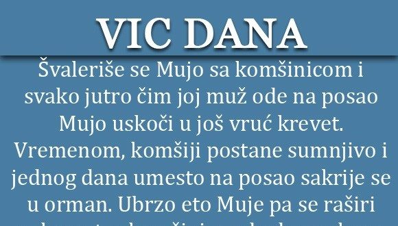Švaleriše se Mujo sa komšinicom i svako jutro čim joj muž ode na posao Mujo uskoči u još vruć krevet.